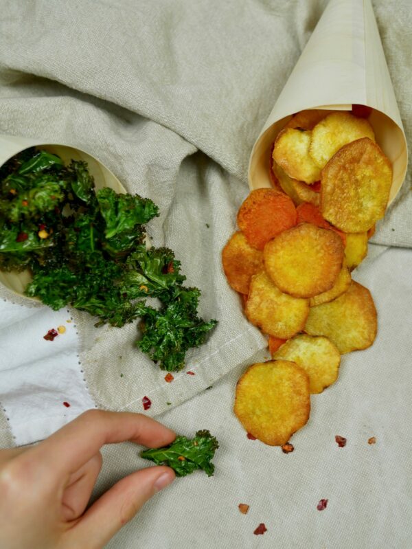 Tip: I keep the oven temperature low (100 degrees C) so as not to risk burning the chips. If you turn up the heat, keep an eye on them to prevent burning.