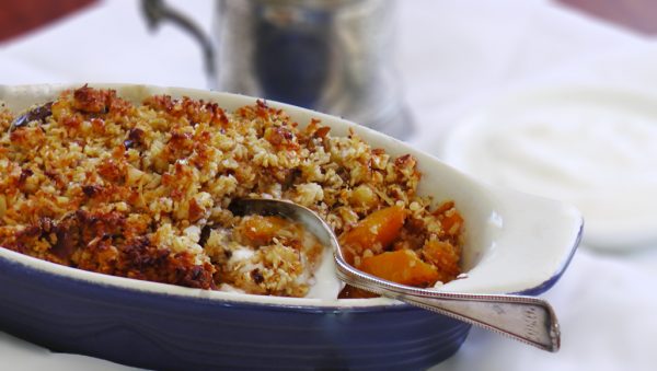 Slice and serve with whipped coconut cream and a drizzle of honey.